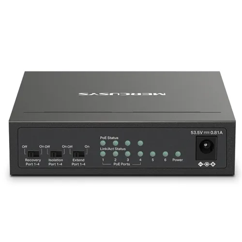 Model: MS106LP Total Interface: 6x 10/100 Mbps RJ45 ports PoE Interface: 4x PoE+ ports PoE Power Budget: 65 Watt PoE Transmiss...